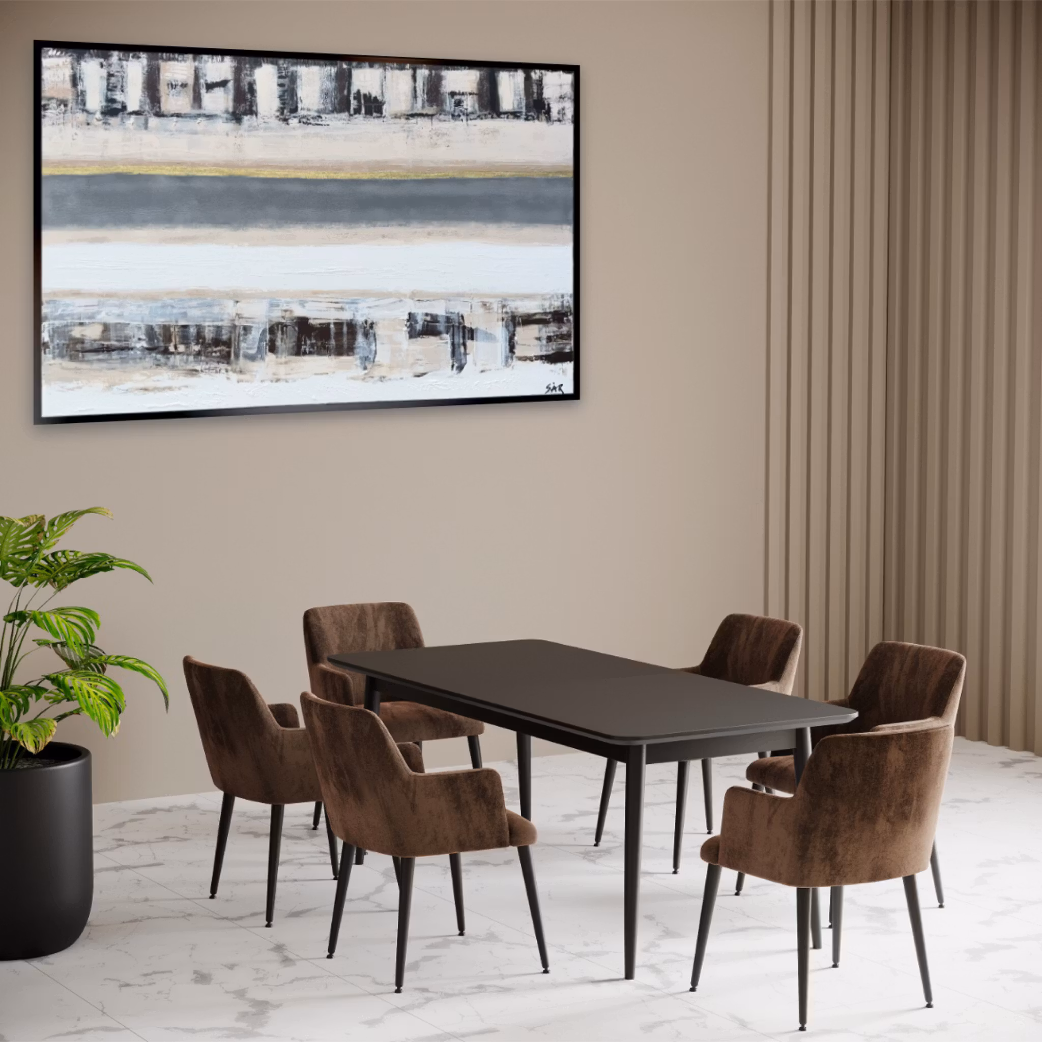 En rogivande palett av bruna och beige färger, som sträcker sig från djupa, mörka toner av jord och till ljusare nyanser av sand.