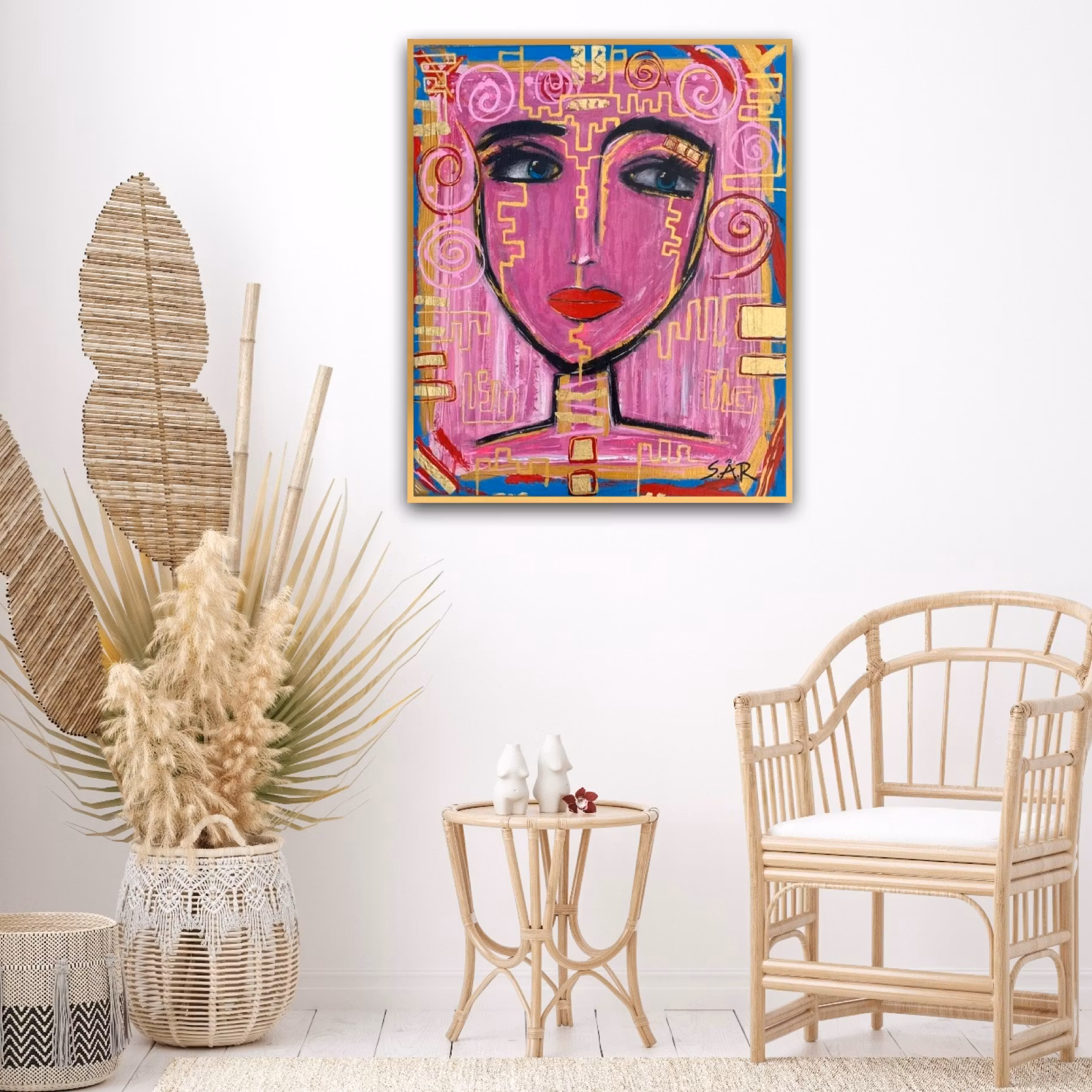 "STREAMS OF DREAMS" innehåller inslag av egyptisk inspiration. Hon utstrålar en aura av mystik och visdom. Hennes blick utrycker ett djup och en medvetenhet. Reflektera gärna över hennes inre värld och de drömmar hon bär på.
