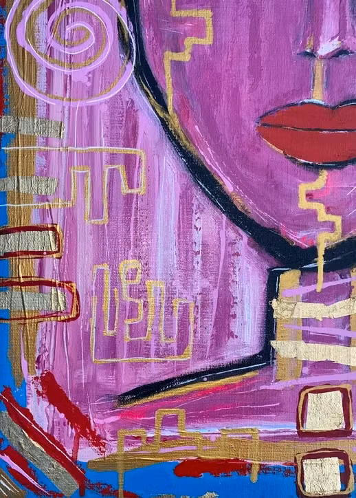 Akrylfärg, slagmetall i guldfärg